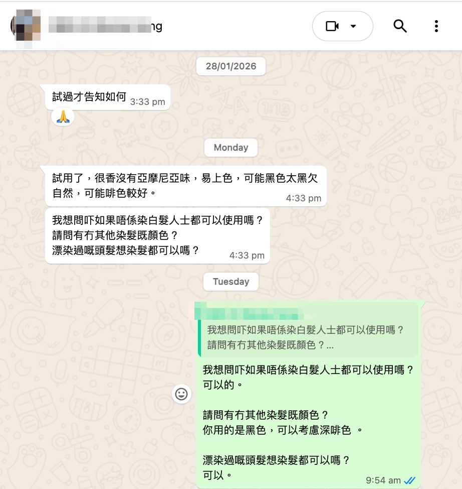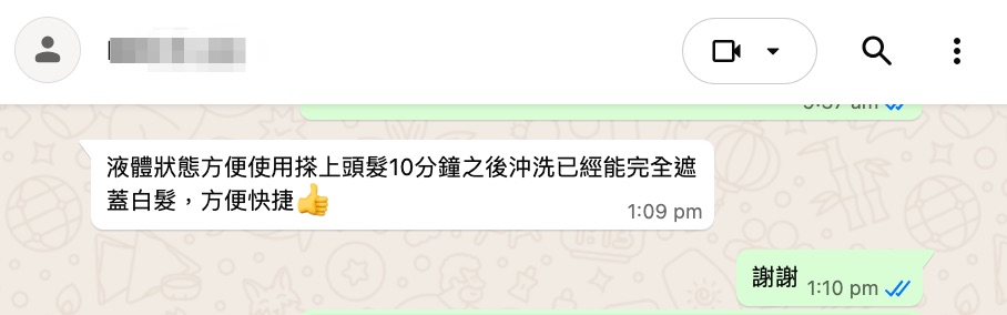 液體狀態方便使用搽上頭髮10分鐘之後沖洗已經能完全遮蓋白髮,方便快捷👍